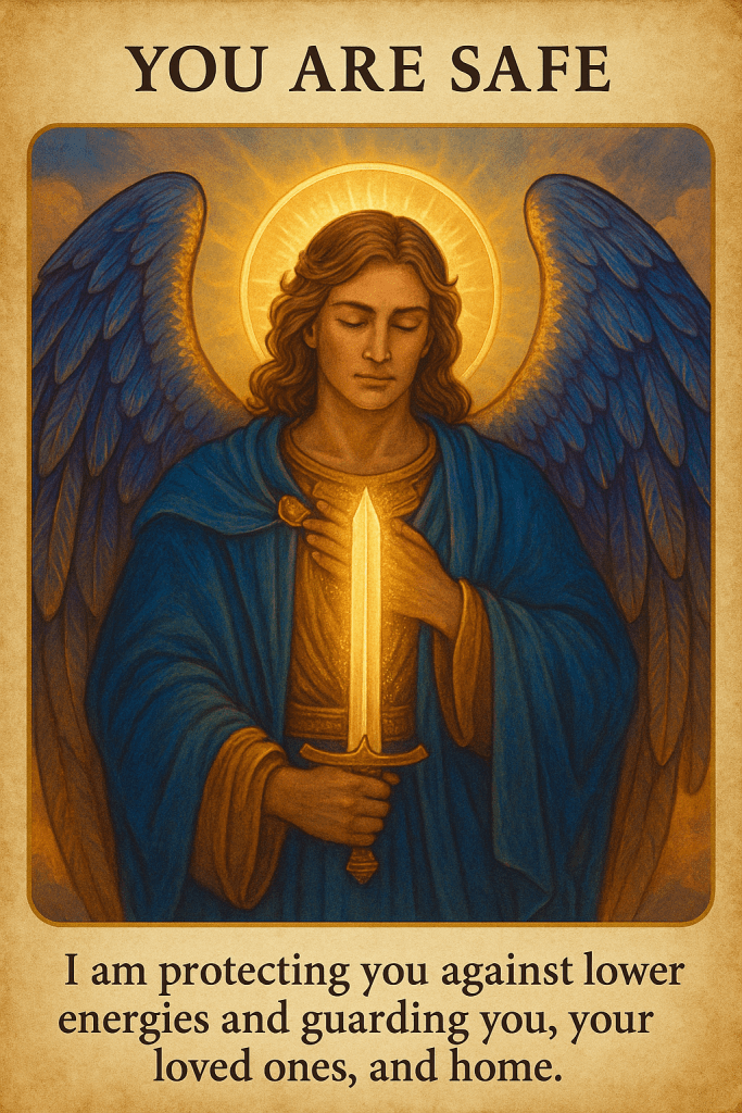 Michaelโs energy is bold yet comforting. He carries a flaming sword that cuts through fear, illusion, and negativity. When you feel unsafe, uncertain, or under spiritual attack, Michael surrounds you with a shield of light โ dissolving lower energies and restoring your personal power.